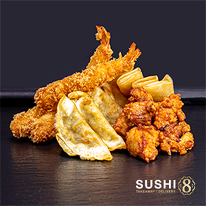 Chicken Karaage ∙ 4x Mini Loempia ∙ 4x Ebi Fry ∙ 4x Gyoza